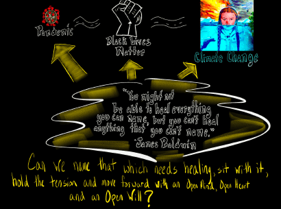 The fast moving shocks of recognized inequalities in the effects of the pandemic and the mass mobilization in response to the murder of George Floyd create profound questions of personal and collective responsibility. The social context demands action that has tangible, structural consequences. Can all that has become visible signal a turning toward reparation and slow steps forward on long, hard paths toward healing? How do we responsibly hold the realizations and questions that Cherry Oakley speaks?