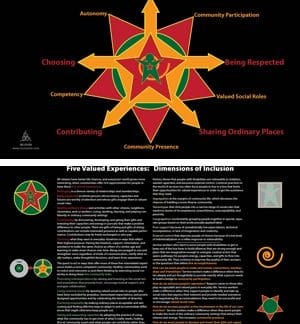 This graphic features the core Valued Experiences that guide our work, and the Service Accomplishments to which we aspire. This foundation work was developed by John O’Brien and Connie Lyle O’Brien many years ago – and remains a powerful and essential foundation for our work. All citizens have better life chances, and everyone’s world grows more interesting, when communities offer rich opportunities for people to have these five valued experiences.